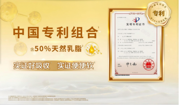專利含50%天然乳脂組合:含天然OPO類似結(jié)構(gòu)脂,吸收效率優(yōu)于人工合成OPO,能有效促進關(guān)鍵營養(yǎng)吸收、減少硬便,搭配近40種天然乳脂保護因子,溫和呵護寶寶嬌嫩腸道。